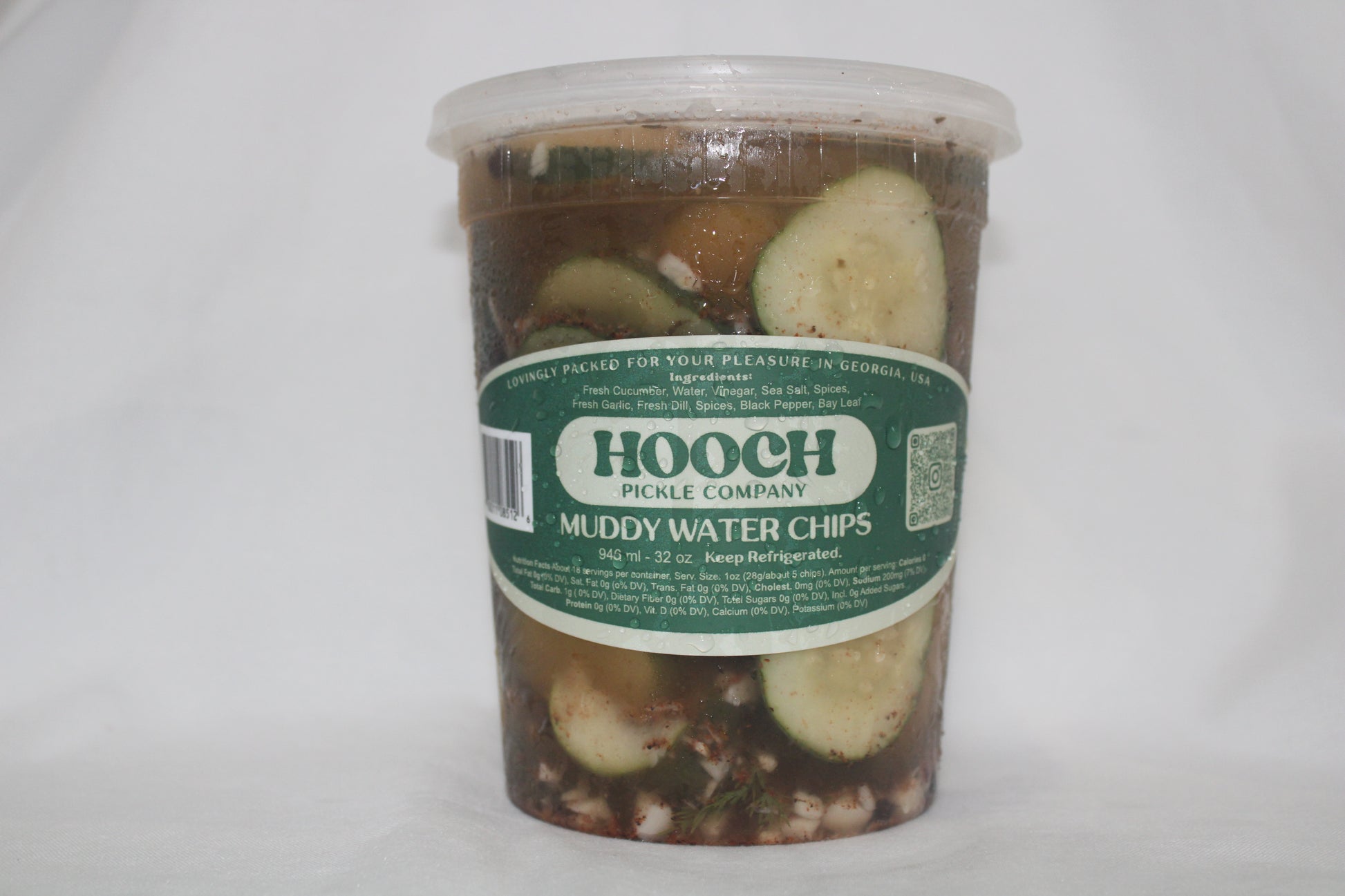 Our Muddy Water Pickles are our signature pickle, (voted best all around pickle 2024 pickle festival) a pun on the Chattahoochee River here in Georgia we only use fresh products such as fresh cucumbers, fresh dill, fresh garlic. and our secret spices (Shhh, don't tell anyone that's what gives these guys the muddy look). You can not go wrong here. Our signature Muddy Water Pickles are the perfect way to add tangy crunch to any meal. Say goodbye to soggy pickles and hello to the freshness of these high-quality, pickles. Invest in your taste buds and try Hooch Pickles today.
