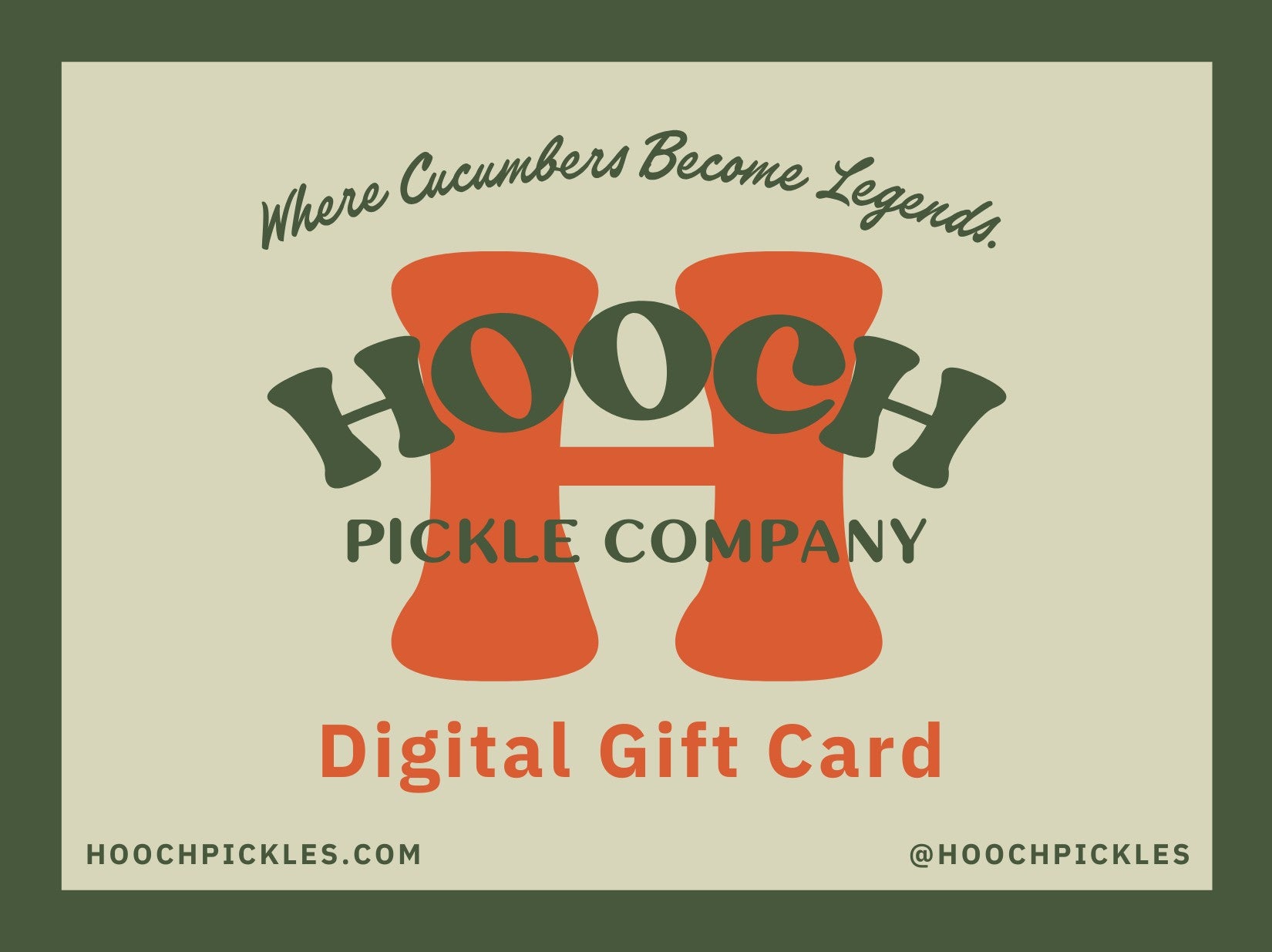 Is there a more thoughtful gift than Hooch Pickles? Let someone know how much you care by sending them a digital gift card from Hooch Pickle Company 'Where Cumbers Become Legends.' Every time they reach for Hooch you will be in their thoughts.